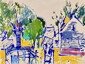As the show’s title suggests, the exhibit reflects an artistic journey that Matthew has embarked on in recent months, as his art continues to develop in new ways. The paintings in the exhibit are large scale and colorful, drawing viewers into the work. Schaefer’s work has always been very spontaneous, with each brushstroke influencing the next. While this show encompasses urban and lakeside scenes, Matthew also creates more nature-oriented abstract landscapes as well as minimalistic abstract works.